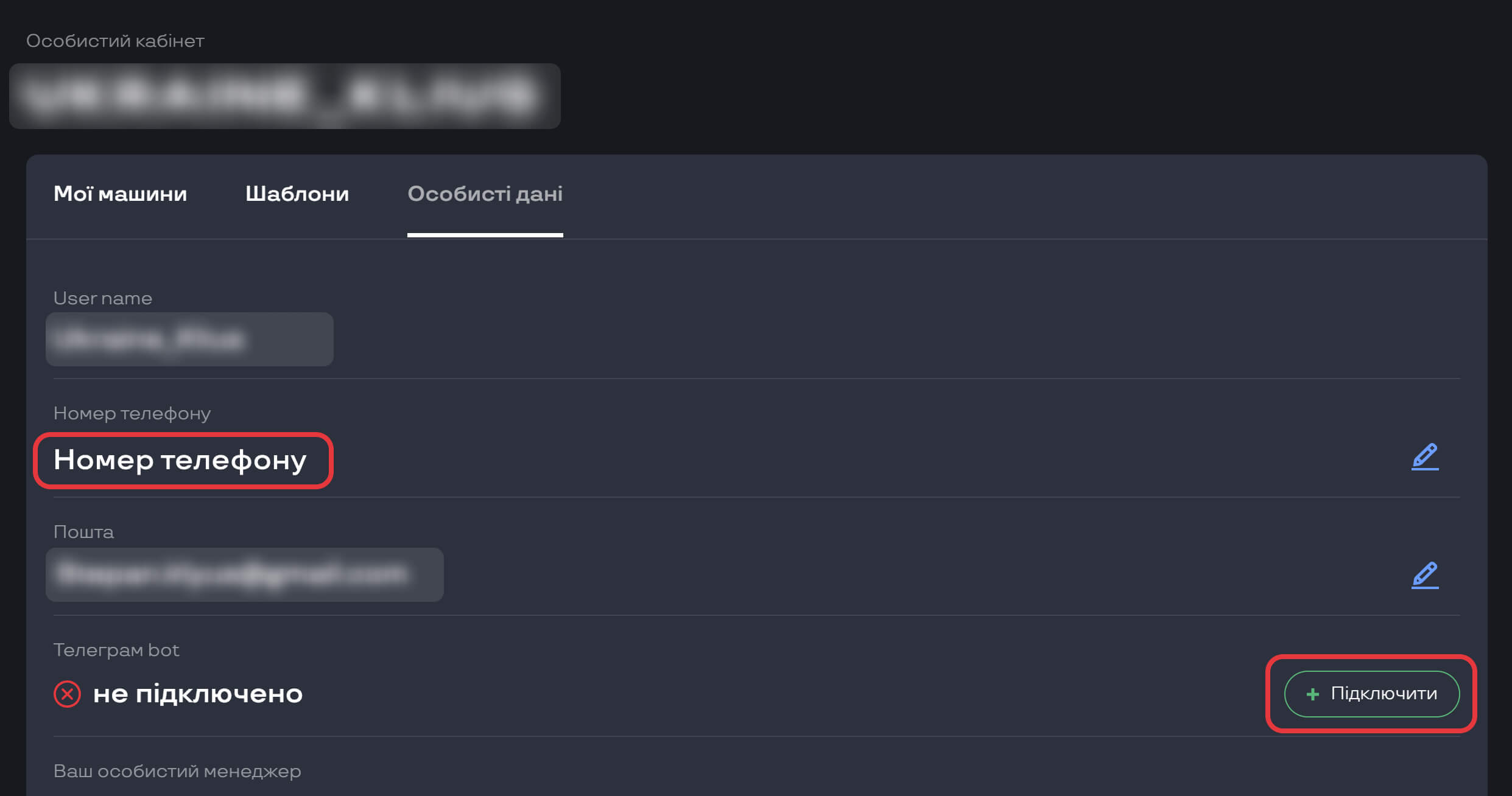 ЗВЕРНІТЬ УВАГУ , що підключення чат-боту відбувається до номера телефону, який у вас вказаний в особистих даних і який ви завжди можете змінити.