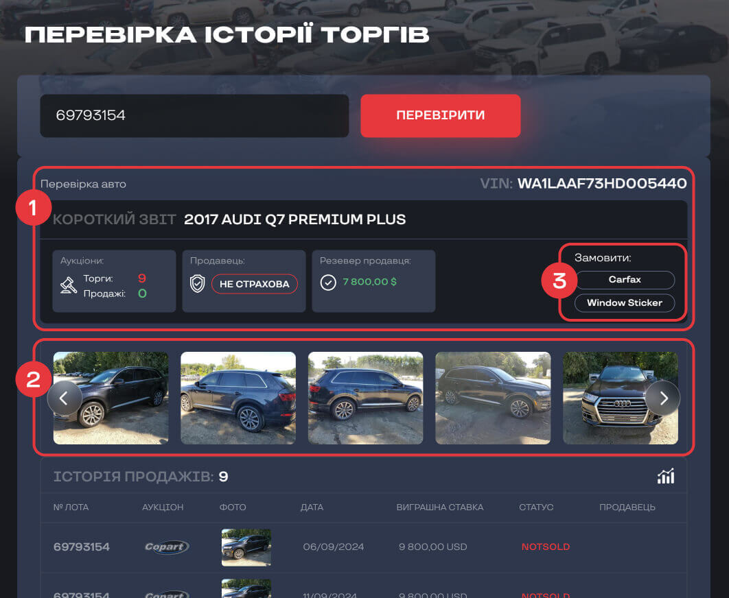 Ми оновили роботу та суттєво покращили дизайн інструмента VINSTAT - зараз він став більш компактний та зрозумілий. Сервіс дозволяє переглядати історію попередніх продажів та резерв продавця.