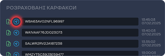 Тепер відправити Carfax та Window Sticker можна в один клік відразу на ваш месенджер Telegram. Повідомлення приходить від нашого Telegram-бота, тому підключення до нього є обов'язковою умовою для можливості відправки звітів.